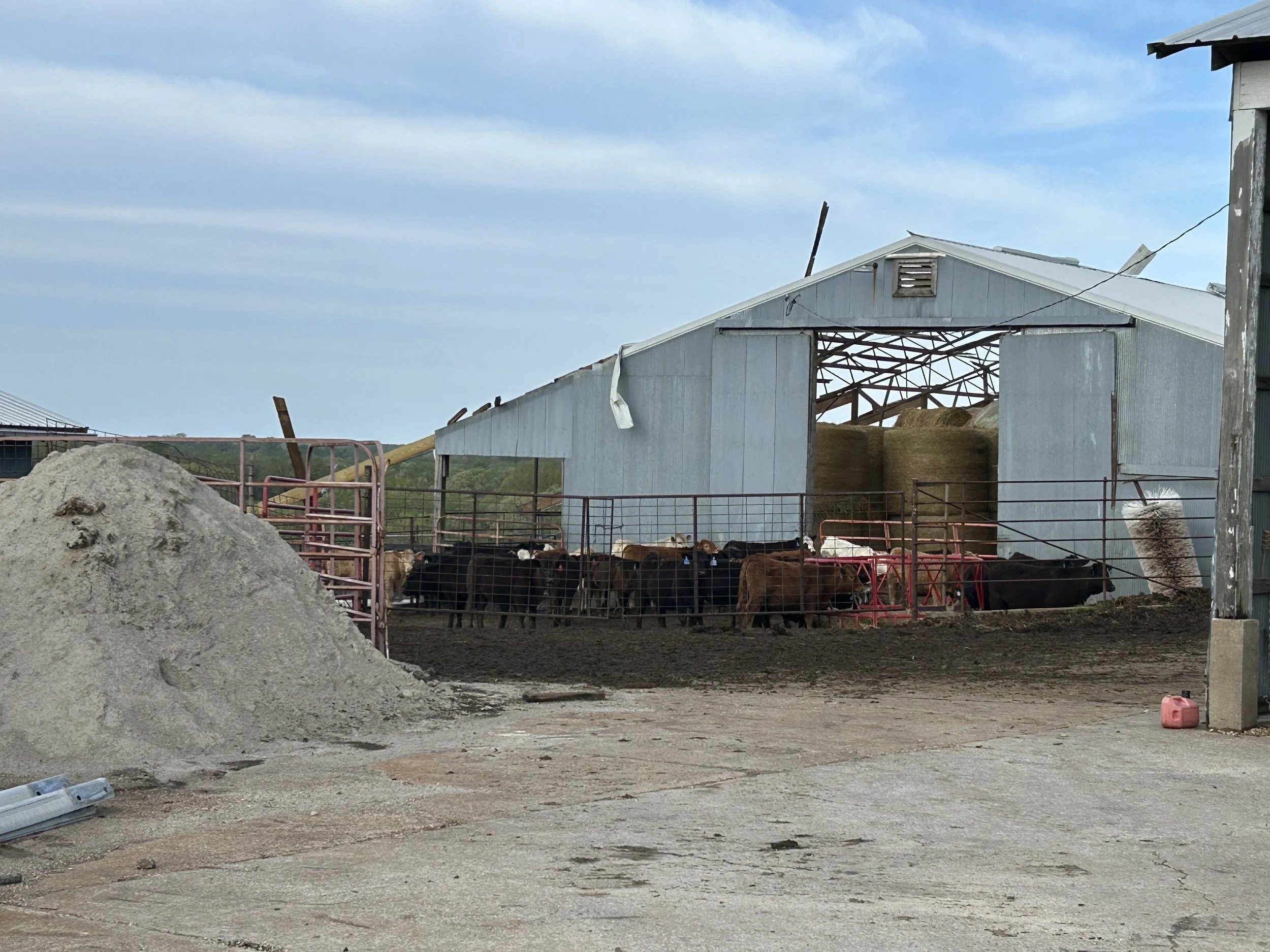 The storm last night did some damage. Thank God the family, dogs, cows, and other critters are all ok.